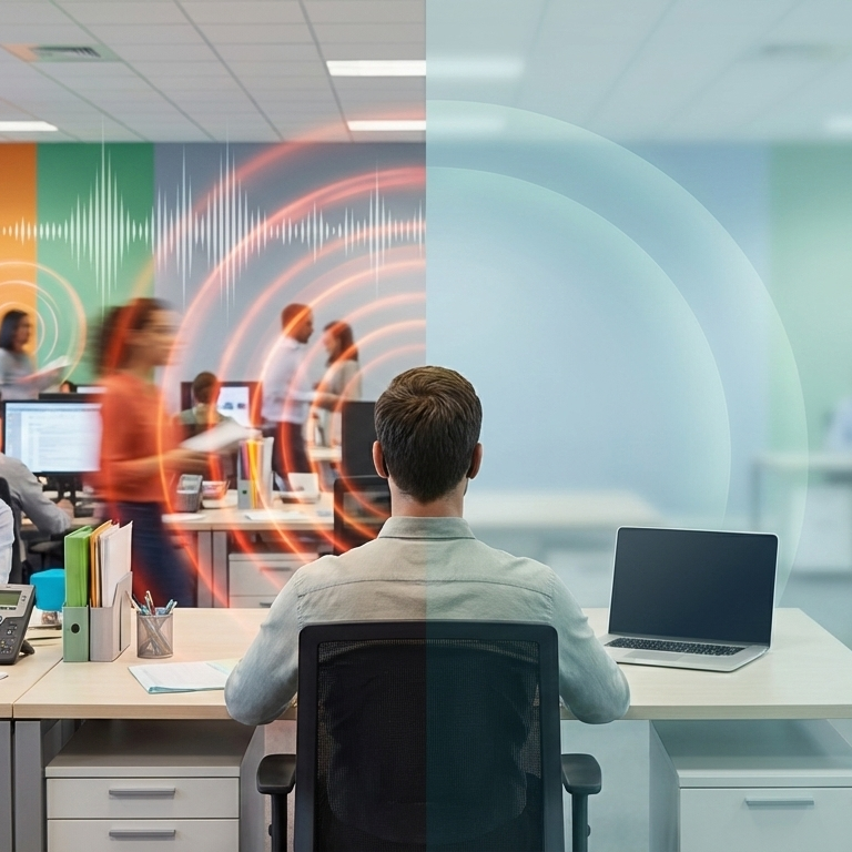 Background chatter and urban noise scatter focus. Pulse smooths the acoustic environment so deep, uninterrupted work becomes possible anywhere.