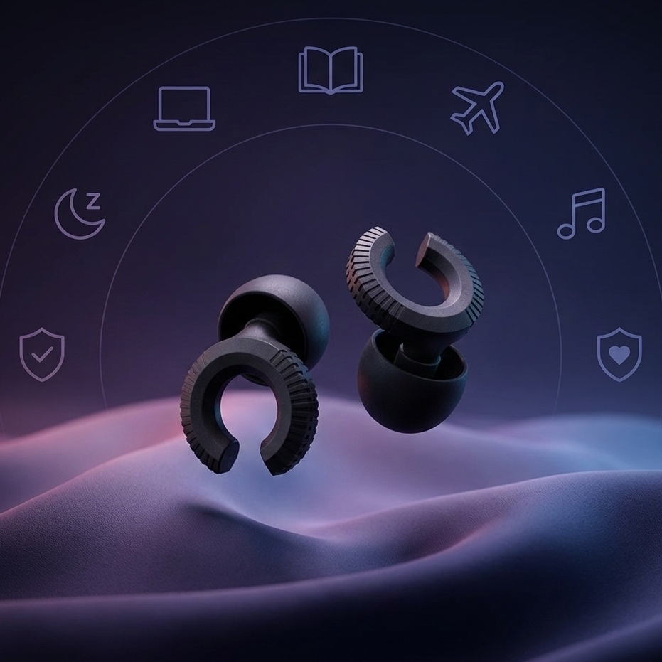 Ultra-soft adaptive earplugs designed for deeper sleep, sharper focus and calm in any environment.